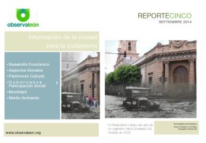 Observa León es un organismo surgido de las instituciones de la sociedad civil para atender una necesidad que cada día es de mayor importancia: contar con información confiable sobre el estado dela Ciudad. Eneste nuestro cuarto reporte sobre la ciudad de León buscamos dar continuidad a la información que hemos venido recopilando, analizando y difundiendo desde el año 2003.